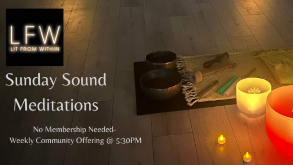 Donation-based Community Offering- no membership needed. Just come as you are and allow the sound to support your inner stillness and renewal. Pre-registration is not required, however will guarantee you a spot.